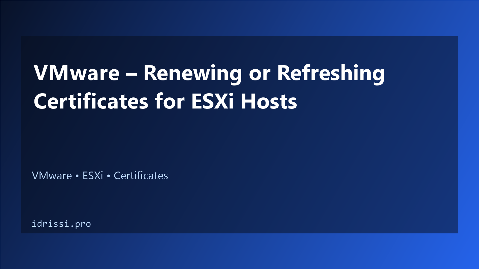 MACHINE_SSL_CERTand Trusted Root certificates are valid (KB Article 2111411). - The ESXi hosts are not in maintenance mode.